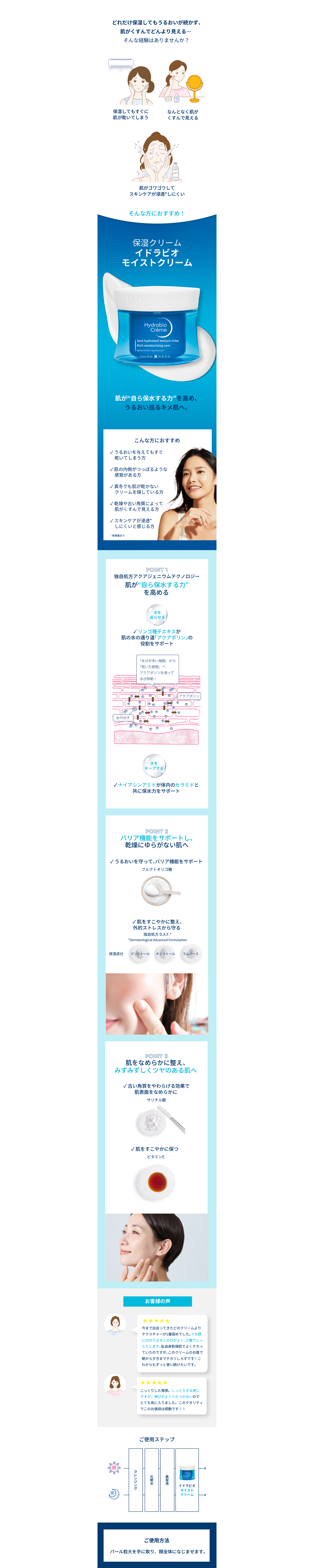ビオデルマ イドラビオは、うるおいを与えるだけではなく乾きにくい素肌へと導くスキンケア。
