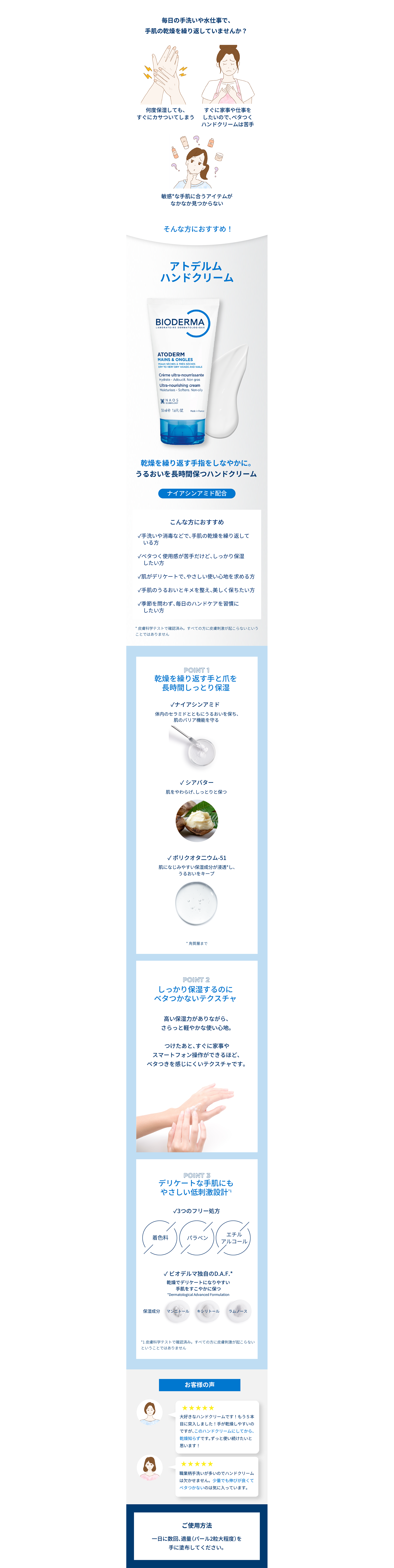 荒れた手指もさらっとしっとり長時間うるおいを保ちます。