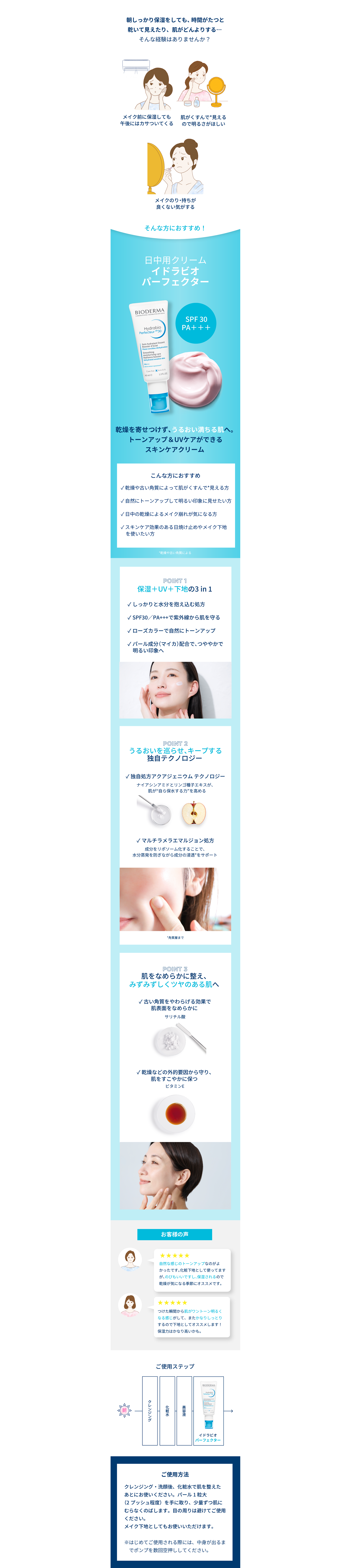 角質層にしっとりと水分を閉じ込めながら、紫外線から大切な素肌を守り、なめらかで、つややかな肌へと導きます。ベタつかず、すっと肌にのびるのでメイク下地としておすすめします。フレッシュフローラルの香り。
