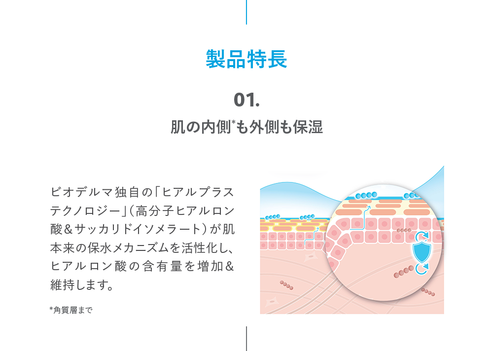 ■ 低分子ヒアルロン酸(加水分解ヒアルロン酸、水分保持成分):角質内部に浸透して、ハリのある肌へ導きます。