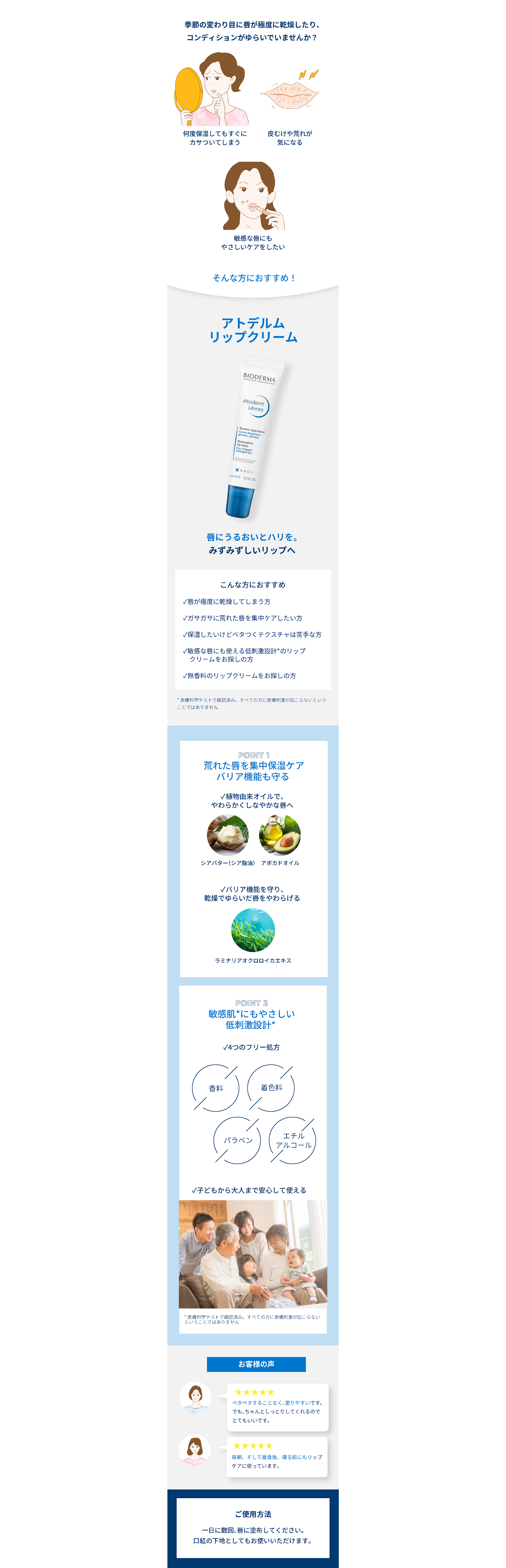 - 肌に刺激がない、安心して使えた等の安全の表現