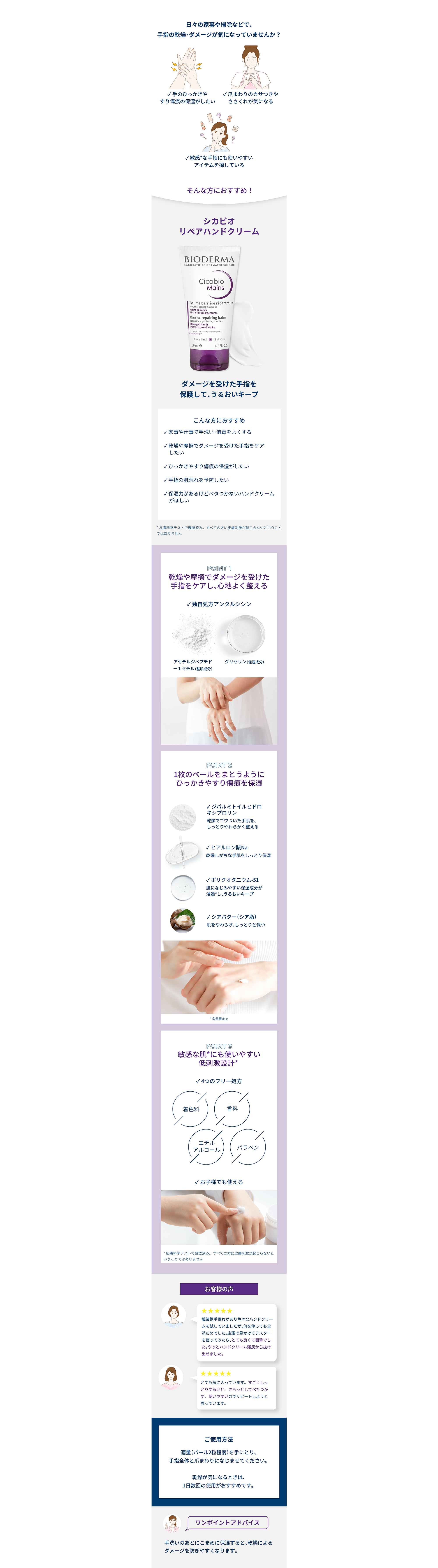 - 肌に刺激がない、安心して使えた等の安全の表現