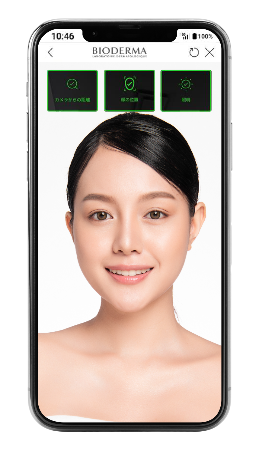 ※顔の撮影は肌診断にとって⼤切な内容です。